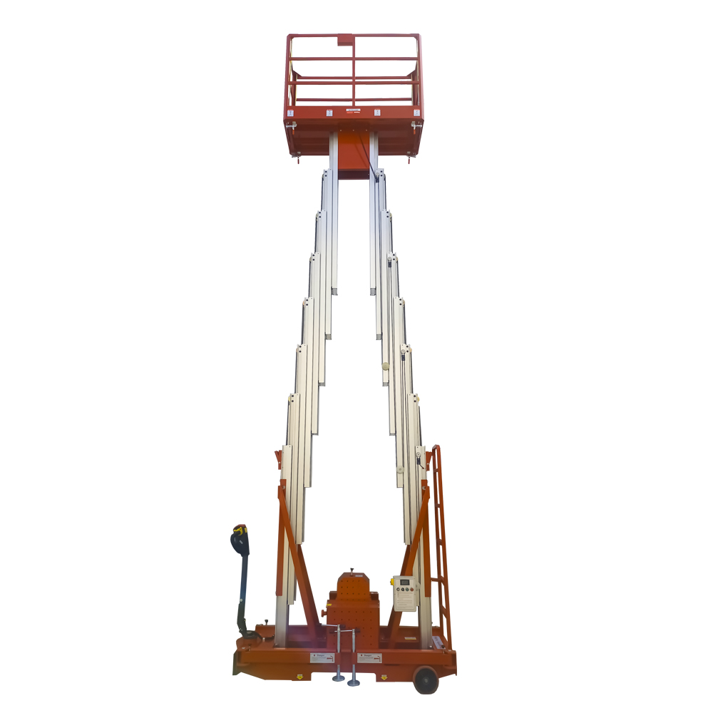 La plataforma de trabajo de doble mástil de aluminio Chinlift Está diseñado para elevar al trabajador con las herramientas necesarias a alturas de trabajo de hasta 12 metros. El diseño único del mástil de elevación proporciona una excelente estabilidad, lo que permite operaciones más seguras y sencillas. La alimentación de CA y CC es opcional.